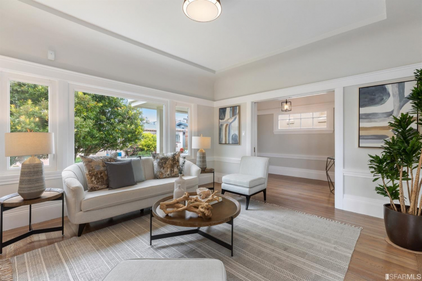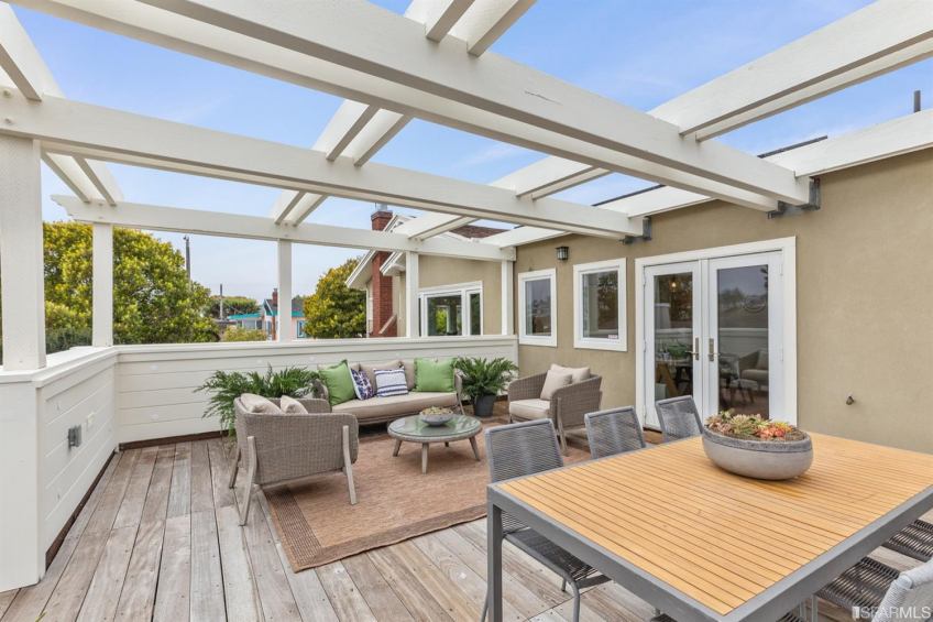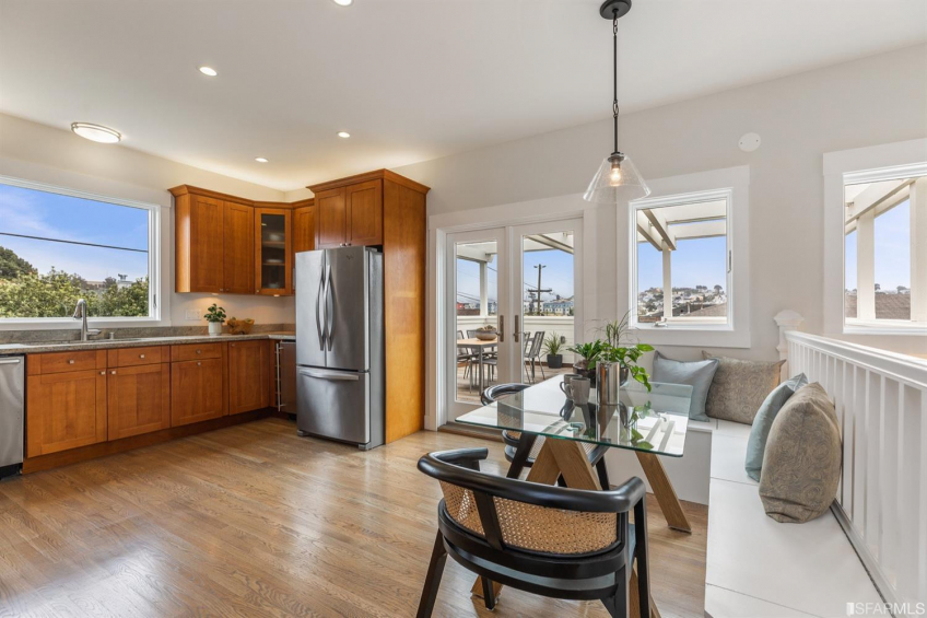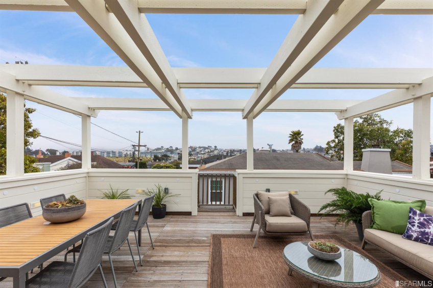 70 Eastwood is a beautiful home located in historic Westwood Park. This large, fully-detached home is bright and spacious with 4 bd, 2 ba, 2-car garage. The home has undergone extensive renovation, sits on one of the largest lots in the neighborhood. Features: 2373 sq.ft.& extra large 5327 sq.ft. lot, formal LR and DR with charming, original built-ins and period details, large & updated kitchen with breakfast nook, 400+ sq. ft. deck off the kitchen with expansive views--perfect for outdoor dining or entertainment. Spacious family room with two sets of French doors opening to the outdoor spaces. Gas fireplace, laundry room, 2-car tandem garage with another parking space in the driveway & multi-purpose area in the rear, 3 outdoor entertainment areas: large deck off the kitchen, ground-level patio and second large deck with a built-in hot tub, flowering vines and fruit trees, solar panels. Walking distance to Whole Foods, restaurants, cafes, award-winning schools, parks, BART/MUNI.
