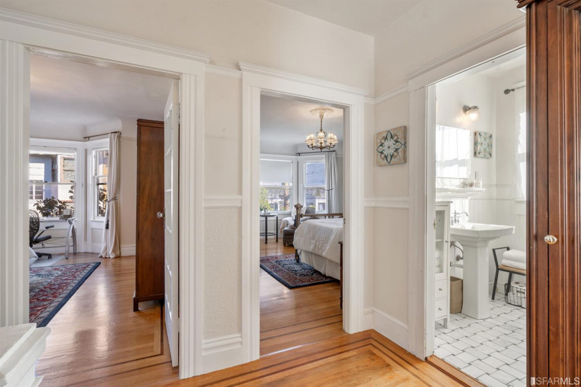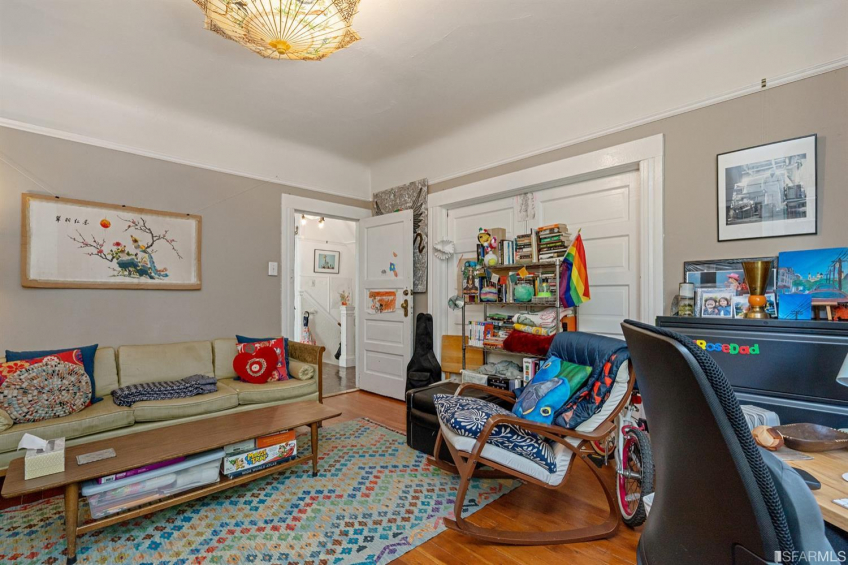 Three-unit building perfect for investor or owner occupier. Three-2bd, 1ba units. Top-floor owner's unit, #148, has a tastefully remodeled bathroom and open concept kitchen/dining/living room yet retains many charming period details. There are two generously sized bedrooms. The main bedroom has an unfinished bathroom (plumbing exists) that now serves as a large walk-in closet. #148 has a laundry/storage room, W/D, tankless water heater, rear deck and solar panels! Unit 150 (middle; rent $2320/mo.) has a similar floor plan to #148, with a laundry/storage room and its own rear deck. Unit #152 (bottom; rent $873/mo.) has in-unit laundry and direct access to the courtyard. Property has a private, landscaped, interior courtyard and a room under the deck for storage or potential workshop. Located in the vibrant Inner Mission on a less-traveled street between Mission St. and the Valencia Corridor close to BART, bus lines, shops, bars, restaurants, & entertainment.